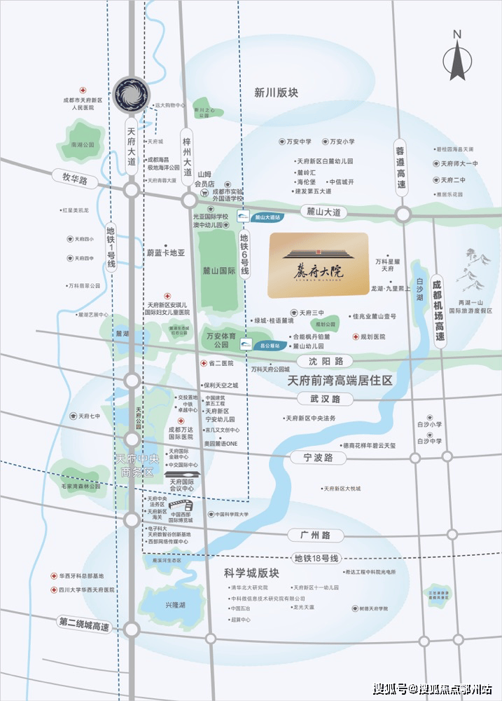 麓府大院,位于天府前湾的核心腹地,北至麓山大道、南至武汉路、西至梓州大道、东至利州大道,是高新区新川之心科技园板块和天府CBD版块(秦皇寺、兴隆湖)的驳接带,并以“公园+居住”的核心定位,三大产业核心区的环伺,成为天府新区首屈一指的“高端宜居走廊”。