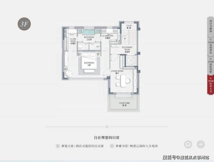 以235㎡户型为例,设5室3厅5卫,8米面宽客厅+全景落地窗
