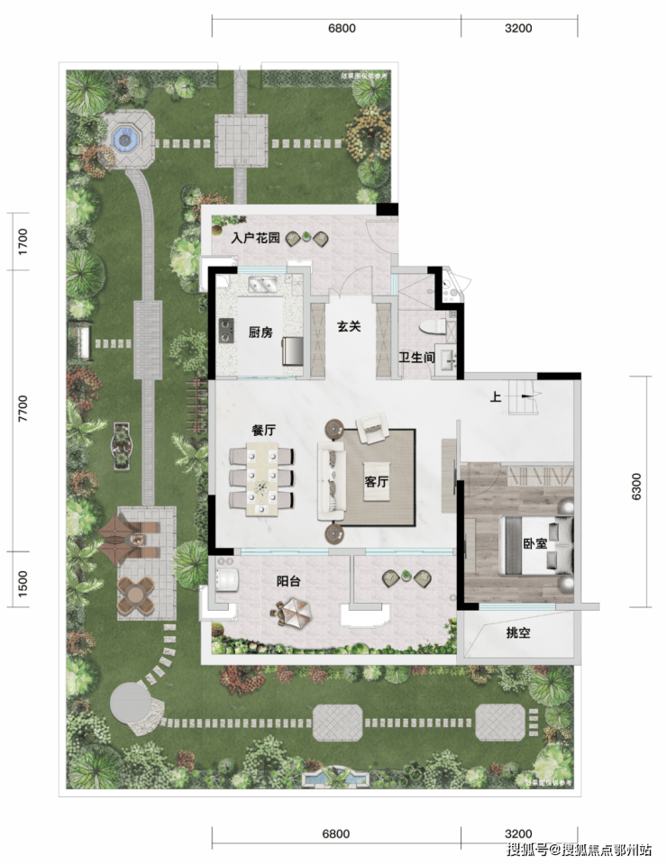 一楼尊享私家庭院最大面积约90㎡