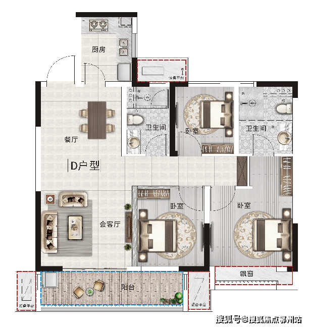 超大南向面宽阳台,拥阳光入室,与清风为伴;