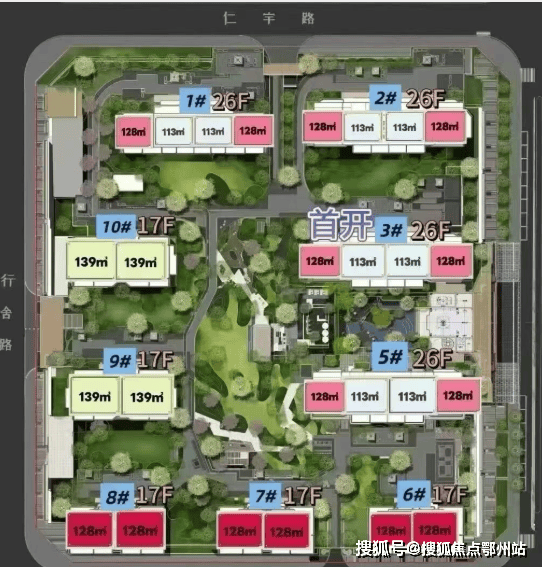 整体布局 :项目占地约46亩,总建筑面积约10万平方米,由5栋17层小高层与4栋26层高层组成,采用高低配规划布局,容积率为2.5,绿地率达35%。