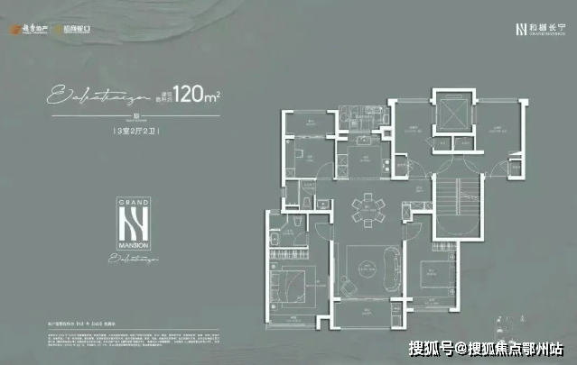 建面约120㎡3房2厅2卫: