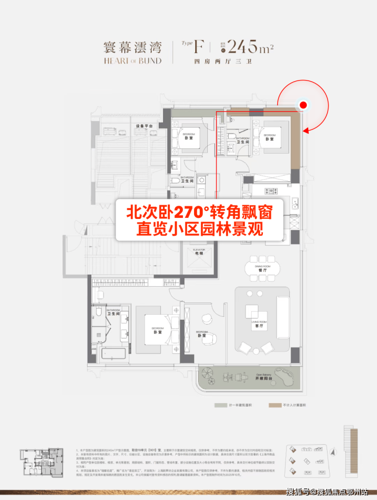 ⑤北次卧套房270°转角飘窗,直览小区园林景观!