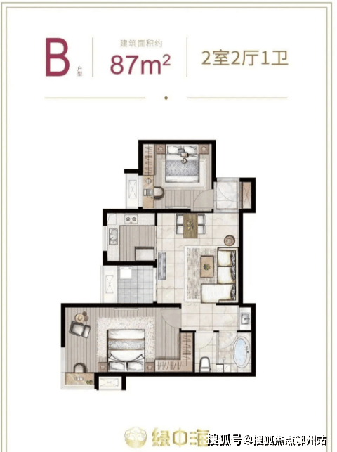 建面约87-89㎡2房2厅1卫