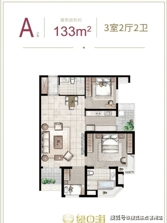 建面约133㎡3房2厅2卫
