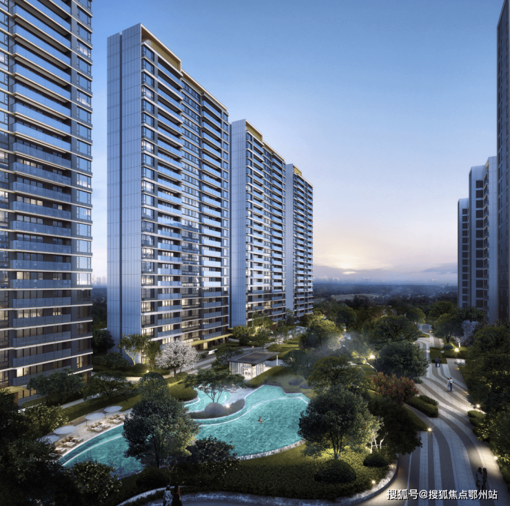 滨湖湾的景观设计,同样也饱含仁恒味道,尤其是标志性的 室外戏水池、大面积水系、公园式景观 ,都是刻在仁恒粉NDA里的元素了~