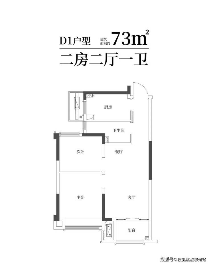 建筑面积约73㎡舒适两房一卫,年轻家庭的向往;