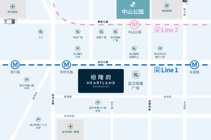 武汉“恒隆府”择址汉口中心京汉大道旁,坐落内环核心区域,与武汉恒隆广场无鏠衔接,毗邻轨道交通,与市内多条重要公共交通线路交汇,享有完备的教育、医疗、公园绿化、五星级酒店及相关配套资源,是融聚浓厚文化底蕴与现代国际风尚的生活之地。