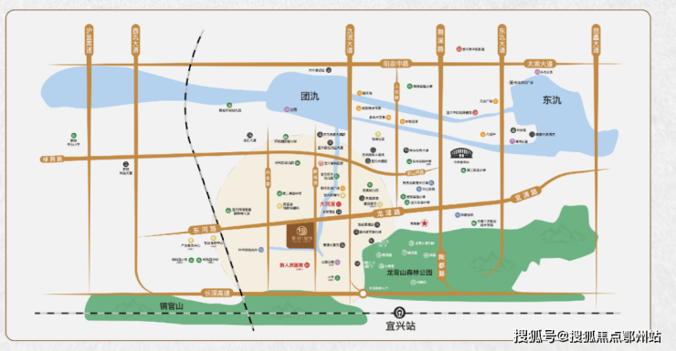 交通配套:位于氿滨南路和龙潭路交汇处,距宜兴站 3.3 公里,连通长深高速、沪宜高速、G104、S342 等,交通通达,还将享受高铁新城的规划红利。