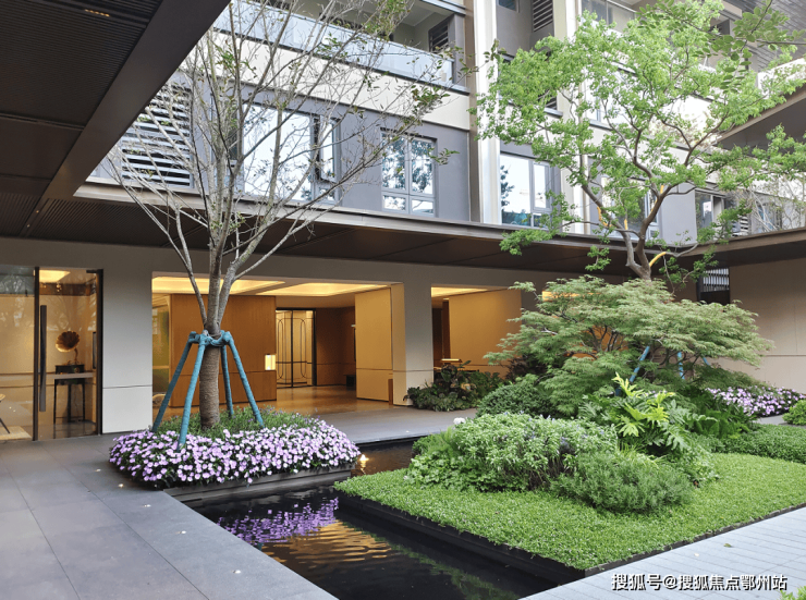 该项目虽然体量不大,但小区内部空间却别有洞天。穿过门庭,成熟且精致的园林、灵动的水景随之展开。