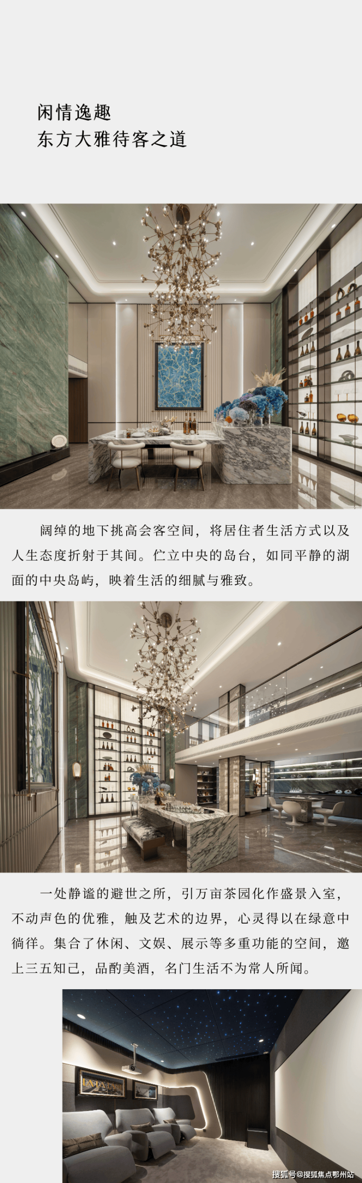 在会所中央,设计了充满中式韵味的 四水归堂 :屋檐四面围合,中间种植舒展松树,承载着中国传统文化中“天人合一”的理学思想。雨季时节,水从四面的檐壁汇聚,寓意着财源风水,也寄托着家人团圆的美好愿望。