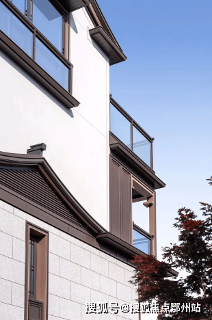 建筑设计出自gad手笔,立面以浅灰石材、咖啡色铝板、涂料为主 ,主打一个“水墨淡彩”,悬山顶出檐深远、举折平缓。并以简洁金属线条勾勒,将悬鱼、雀替、花窗等元素进行抽象化表达,尽显中式隽永之美。尤其是立面用的 铝构工艺 ,工序繁复,线条立挺,专门邀请古建筑施工单位打造。
