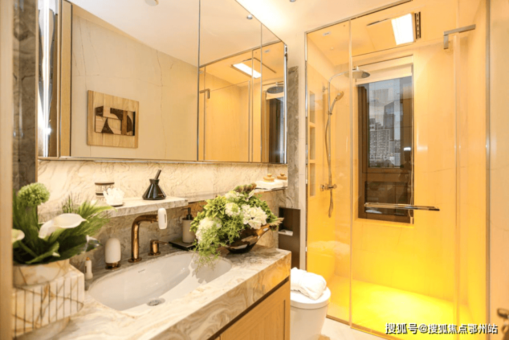 项目装标绝非品牌堆砌,而是围绕高频生活场景构建的系统方案。厨房精选国际一线豪宅同配厨电九件套,集成嘉格纳油烟机、灶具;博世嵌入式冰箱、洗碗机、保温碟抽、嵌饮机、蒸烤机;日立厨房专用空调;A.O.史密斯热水器等。卫浴配备科勒维C美研梳洗龙头、奥普光子嫩肤美容浴霸、美妆镜箱+美妆冰箱汉斯格雅、杜拉维特,构筑了品质生活的硬件基础。