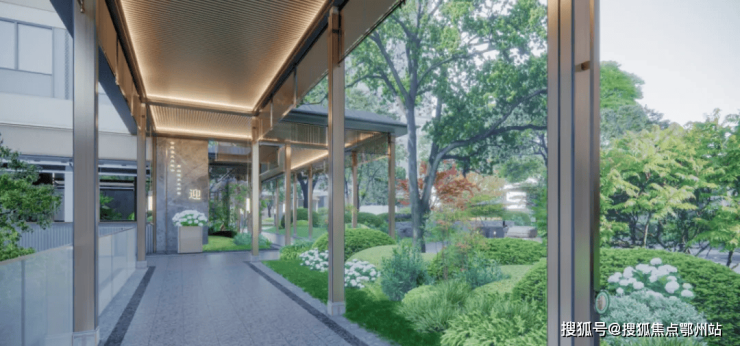 值得一提的是,该项目风雨连廊宽度可达约3.5米,空间阔绰,穿过风雨连廊,也能遍赏小区内的绝美园林景观。