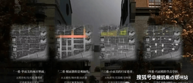 四重景观空间 层层递进的隐居哲学从城市界面到节点空间 ,由大到小打造“四重空间感受”,营造中西和鸣的感官体验。从华而美的城市道路、糅而谐的景观轴线,美而精的归家巷弄、雅而巧的节点空间,每一处场景皆实现私密与艺术的交融,感受城市繁华与归家宁静的交叠。