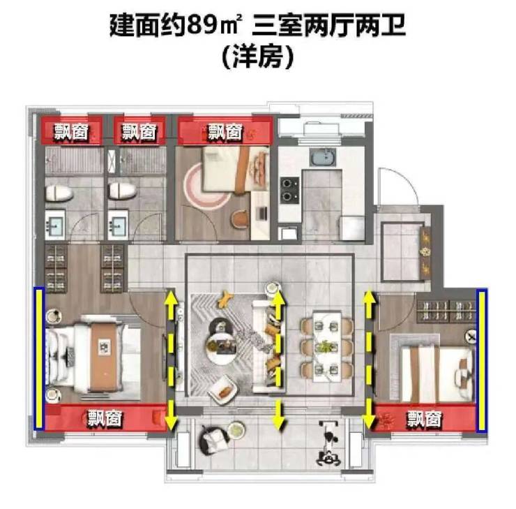 【产品参数】 1、洋房(精装交付、中央空调+地暖、现代轻奢风格)9-10层洋房:建面约89㎡(三房两厅两卫)层高 :约3.1米均价:约37687元/㎡