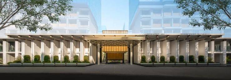 先看项目大门,我们会震撼于超200米宽的 酒店式门仪 、最高约7米的尺度,惊艳于16根 柱廊序列 的典雅气质,心仪于 紫金琉璃背景墙 、玉石纹理的透光材质的浪漫神韵。