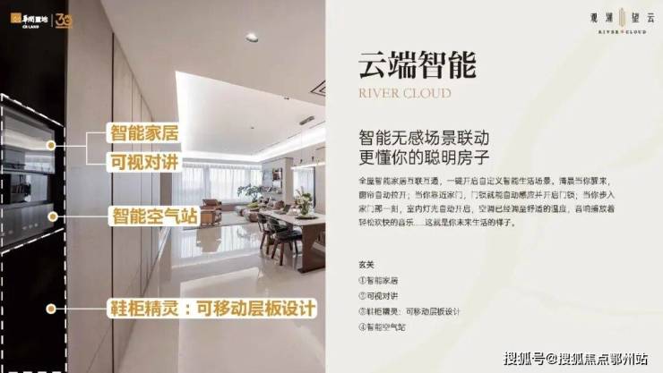 此外,观潮望云还有智能化设计, 一键呼梯功能;耶鲁五合一智能门锁,除了常规的刷卡、钥匙、刷脸、密码外,还有智能猫眼,与家中智能Pro系统联动;还可以通过语音、手机app、智能面板,来控制家中的灯光,窗帘... ...满满黑科技