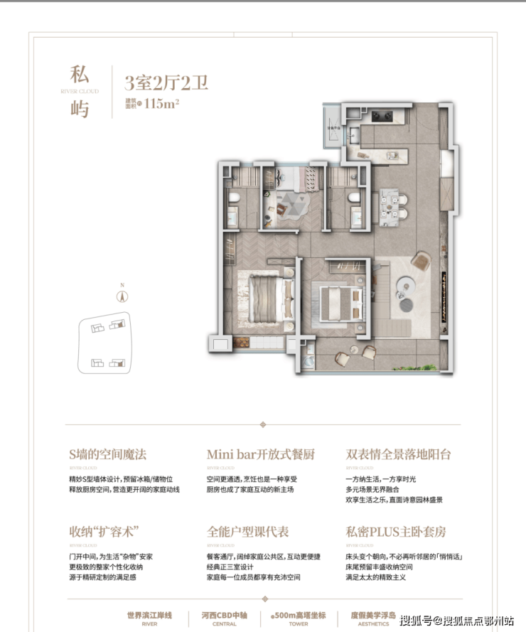 建面约115㎡样板间S墙示范展示,实际以交付为准