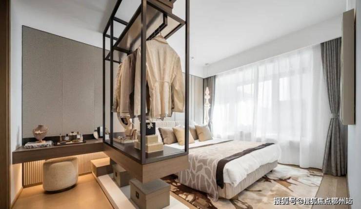还有主卧奢华套房,不仅空间上宽敞阔绰,还出乎意料地配备了独立衣帽空间+浴缸,这完全是大平层级别的享受