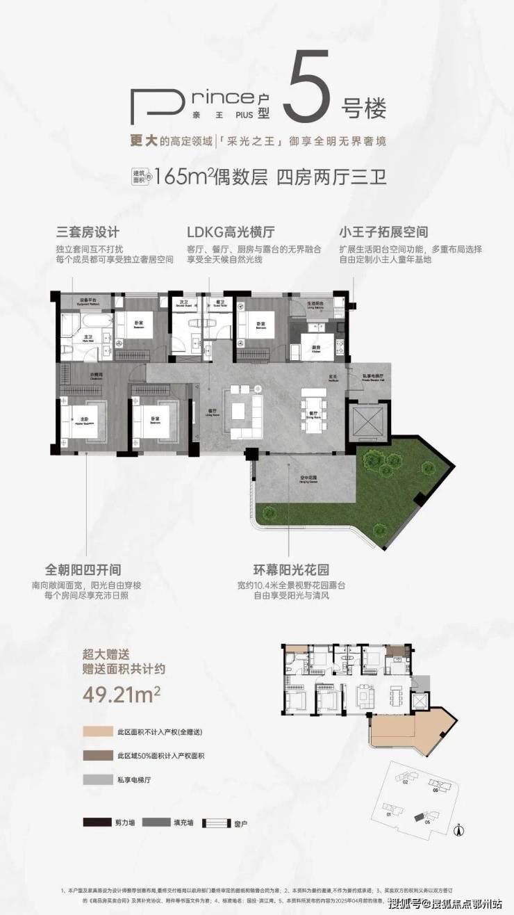 项目也是樊城区首个纯四代宅项目,从产品上看,推出户型建面 约140-218㎡ 江上院墅,采用 奇偶层错落 布局,层层享 最大约60㎡空中花园 以及 约110% 得房率。