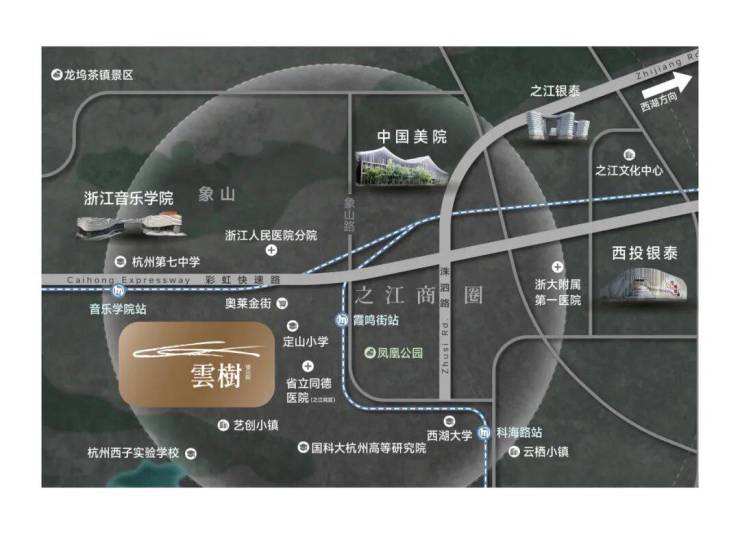 西湖群山浓荫掩映,之江芯传统墅居贵地,近邻音乐学院、中国美院。