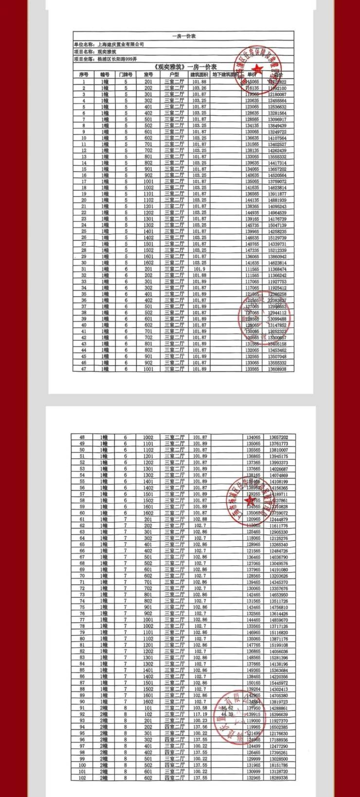 一房一价表