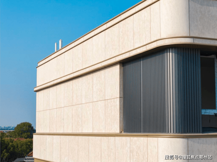 社区方面,摩登江南延续百年公寓的轮廓之美,几何线条运用再现曾经风靡上海的art-deco都会风潮,并采用 保加利亚进口的雅克米黄干挂石材 ,搭配精美的香槟金铝板装饰。
