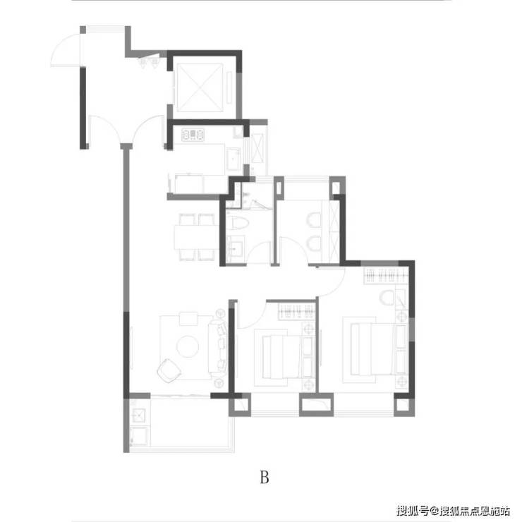 B户型 | 3室2厅1卫 | 建筑面积约89㎡