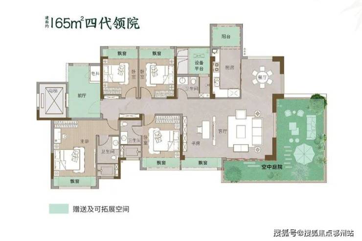 室内LDKBG一体化布局(客厅、餐厅 、厨房、阳台、花园融合),打造剧场式端厅格局,同时保留阳光飘窗的优化空间, 让整个南北向则形成户型的“超长采光面宽”,比如建面约165㎡户型,得房率近115%,面宽竟然长达约22米 ,每个空间,阳光都可倾泻而入。