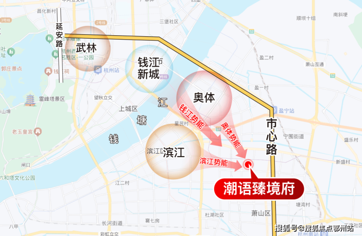 潮语臻境府落位的市北恰好与钱江世纪城、滨江区构成了“ 黄金三角 ”,是滨萧一体化的核芯腹地,同时享有滨江区和钱江世纪城发展红利以及高能级配套。