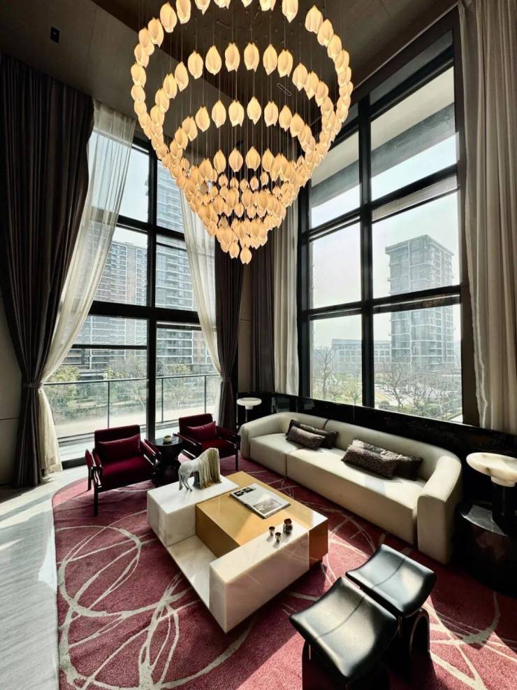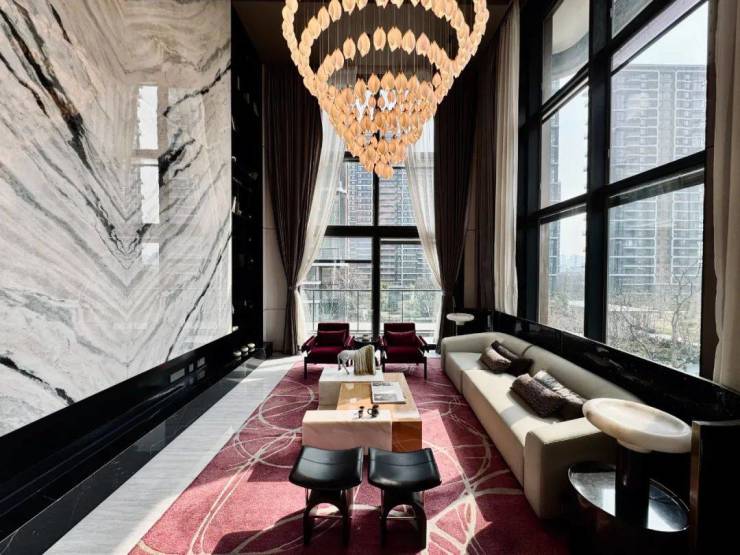 相比一般高端住宅只有4~5米挑高的客厅,万科瑧湾汇建筑面积约225㎡户型利用角部交错咬合手法,使客厅挑高达到了惊人的约6.2米,大玻璃落地窗一气呵成。