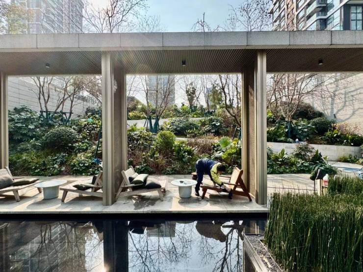 除了吸睛的外立面之外,中庭景观也非常漂亮,且物业服务非常到位,有专人每日进行维护,修缮。