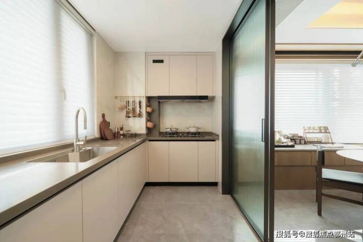 前排一线湖景楼幢 , 约12.4米超大面宽 、 四开间朝南 。实体样板房的餐厅在做了双排餐边柜后,座位依然阔绰。厨房也非常自信的放入了双开门大冰箱,对喜欢屯各种生鲜食品、饮料的年轻人来说真是心头好。