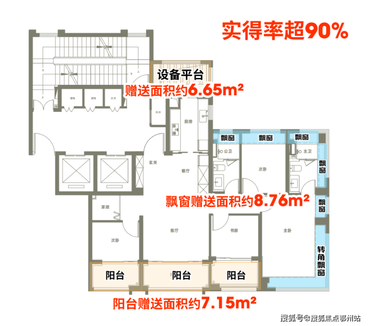第三大亮点,三阳台+罕见设备平台,实得率拉满!