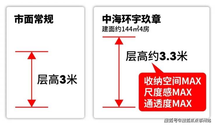 要知道,同级新房的层高大多在3-3.1米,环宇玖章144平户型足足比它们高出20-30厘米。 层高不同于装修,属于后期无法改动的硬性优势 ,意味它能带来永久性的采光、通风升级,更能为立体收纳创造充足空间。