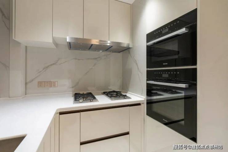 细节方面,项目采用了 拉米娜 的进口电视背景墙、顶级奢侈品牌 卡莉斯塔 的主卫龙头、 ABB 的智能化控制、 LG 的厨房台面,甚至是阳台的电动晾衣架、水槽、吊柜都是交付标准。