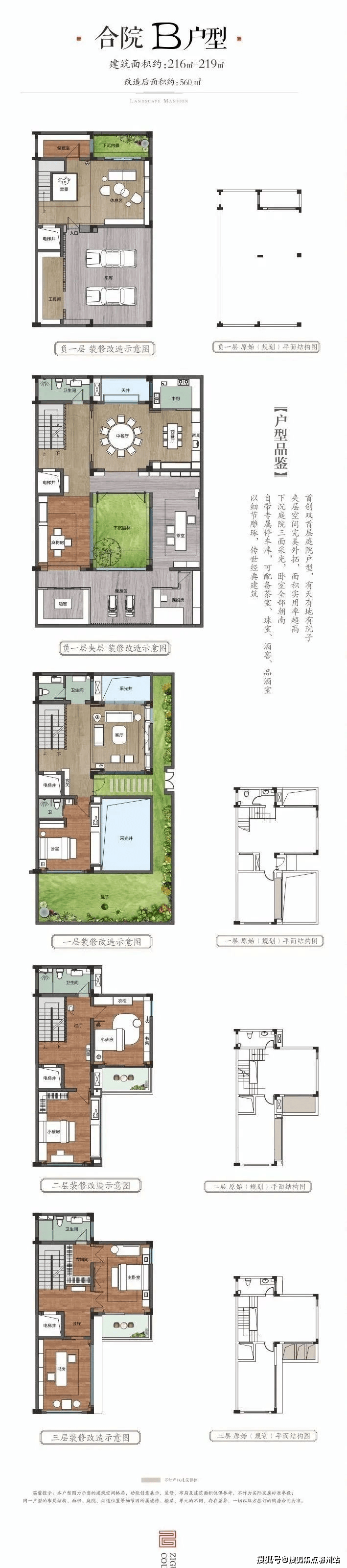 ②B户型买219㎡改造后实用560㎡带90㎡庭院