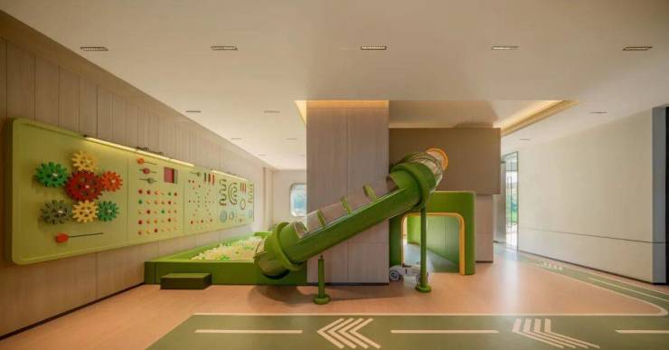示范区空间中设置了包含健身房、瑜伽室等多功能下沉会所,并通过架空层泛会所的延伸,覆盖达尔文自然课堂、儿童玩乐区、公共活动室等亲子空间功能,多个主题庭院则为长者提供从容安宁的休憩节点。这些空间不仅丰富了社区生活场景,更成为邻里交流的温度场。