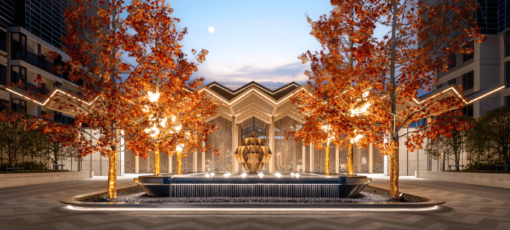 示范区以立体贯通的水脉叙事,结合“山水木风”等自然元素,打造可听、可感、可游、可赏的美学空间。步移景异,在一个个有温度的角落中,形成与自然共生的日常,让未来业主真正体会从“居所”到“心安之处”的升华。