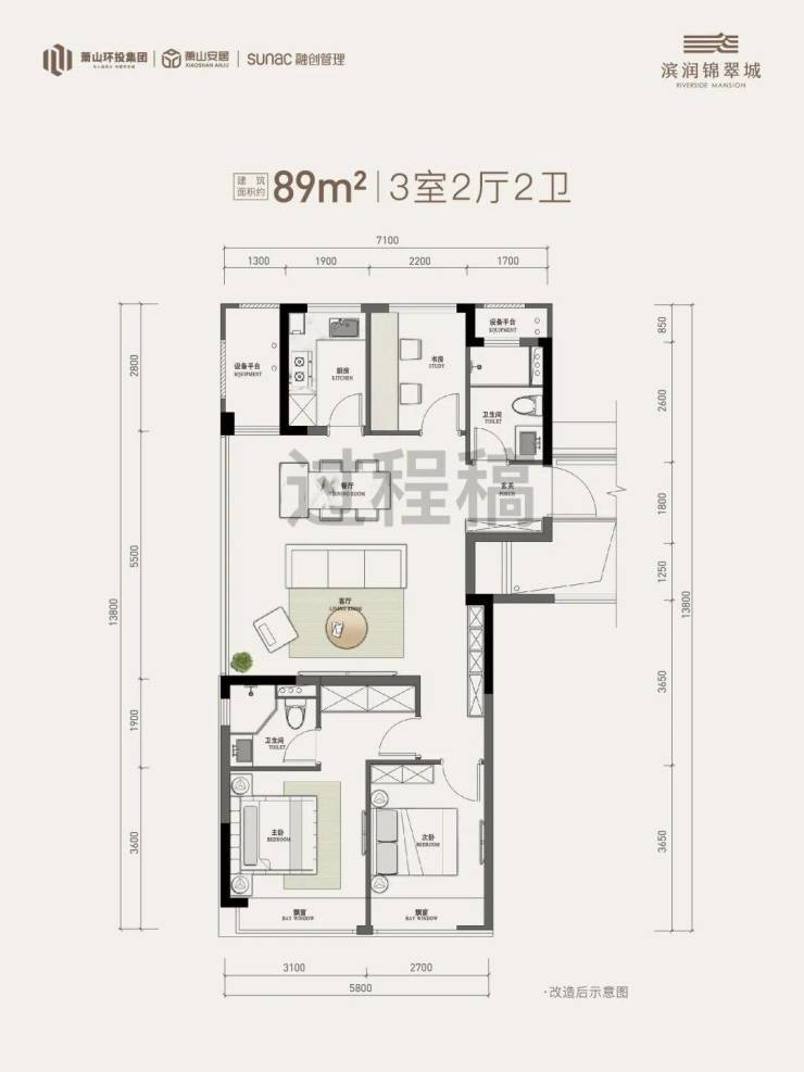 王牌户型:建面约89方三房两卫