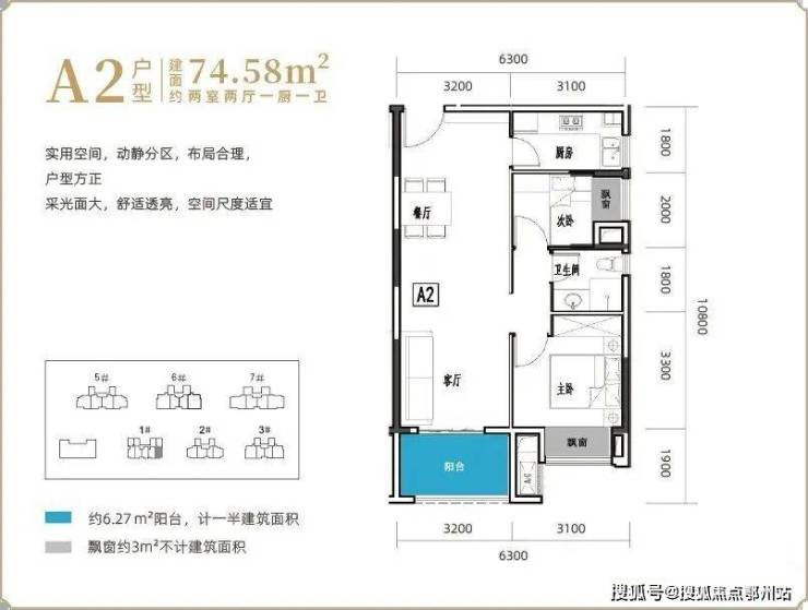 户型区间建面约75-193㎡二至四房,配备超宽阔景阳台,视野开阔,布局满足各种需求,整体动线设计合理,没有丝毫浪费空间。拿112.06㎡三房来说,南北双阳台,约16㎡阳台、超大面积主卧全家共享舒适生活。