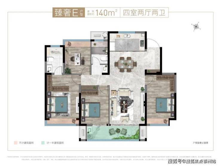 四开间朝南 | 双拼式阳台 | 套房主卧 | 三卧带飘窗