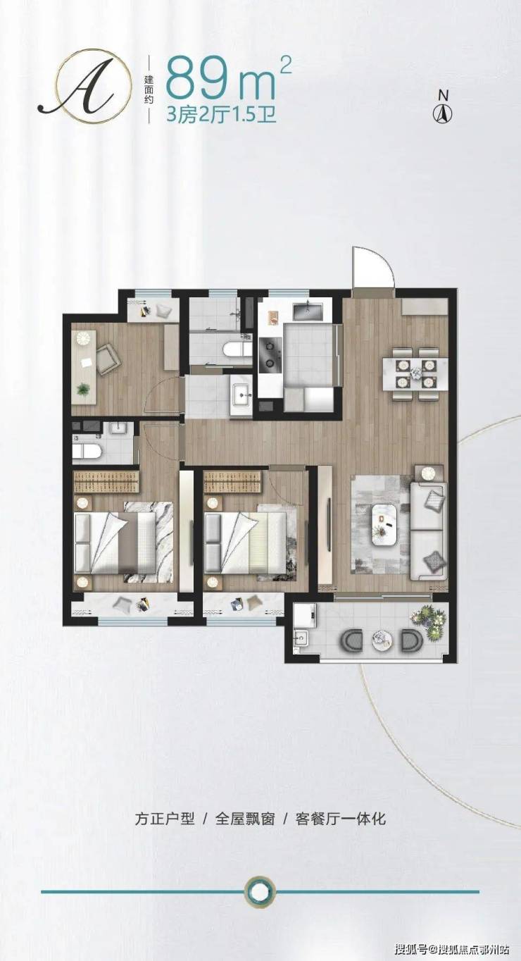 建面约89㎡做3房,功能性上就占尽先机,没想到项目还有1.5卫配置, 主卧升级套房 ,真正实现一步到位!