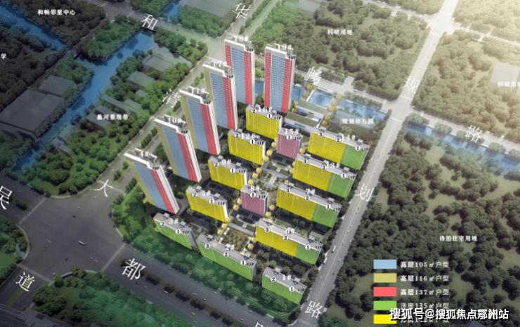 规划打造19栋住宅、其中 13栋11层小高层,6栋26层高层,合计总套数为1262套,建面约105-143㎡,分两期开发。