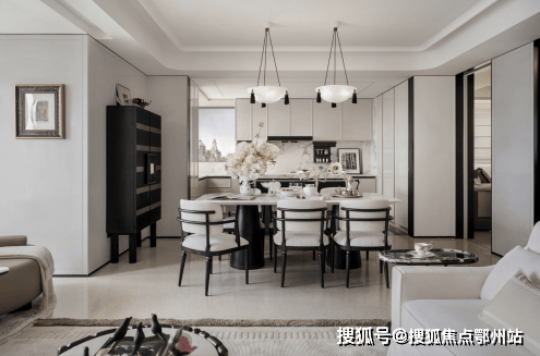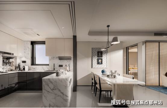 美学与场景的双重高定:摒弃传统豪宅的堆砌感,采用香奈儿式黑白撞色美学—— 入户黑色法式镶板柜配黄铜拉手,客厅悬浮吊顶裹环形灯带,让归家仪式感如走进高端奢品店;更精准适配生活场景:主卧与北向书房的270° 转角飘窗,将陆家嘴天际线化作 “私家画卷”,首开 2 号楼中高区业主对望陆家嘴摩登天际;超大中西岛台打破厨房 “孤立属性”,朋友小聚品酒、家人早餐互动皆能承载,让烹饪区变身社交核心。