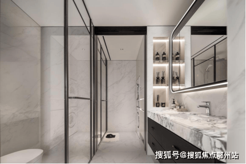 细节里的“痛点杀手”:对标五星级酒店的四分离公卫,把洗漱、如厕、淋浴、洗衣彻底分区,搭配汉斯格雅花洒、伊奈智能马桶,解决多人口家庭“早高峰抢厕” 难题;博洛尼定制橱柜藏着转角拉篮、下拉式收纳,过道隐形储物柜与主卧步入式衣帽间,让 “家里无杂乱” 成为常态。