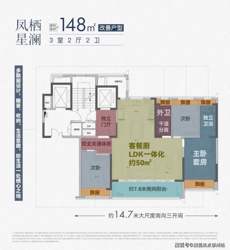 【四开间朝南】约14.7米四开间朝南,全明采光设计高颜值+高光户型,南向俯瞰微度假景观,适逸生活流淌