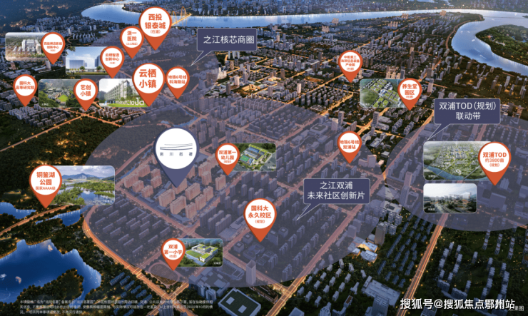 总规划面积约3800亩的之江双浦TOD(规划),拥有约74万方核心建筑面积,完全站在了之江向南发展的中芯C位。