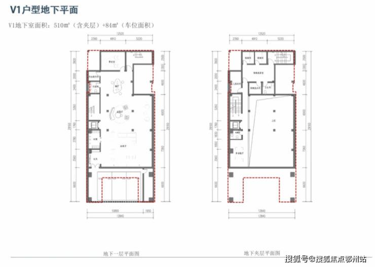 1、v1户型:地上3层约847平、地下2层约510平